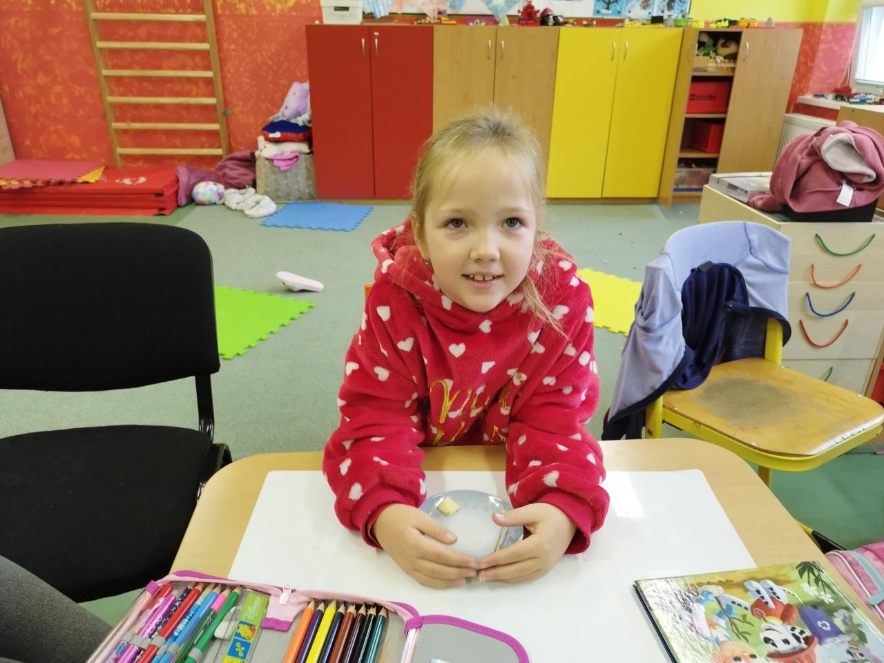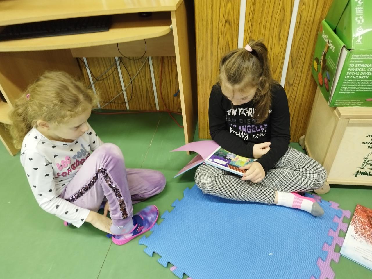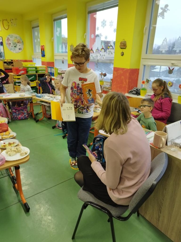 Děti si donesly knihy, o kterých jsme si povídali. Vybrali jsme tu nej, ze které jsme kousek přečetli. Výstupem bylo vyplnění čtenářského listu a ilustrace ke každé knížce. Spojili jsme příjemné s užitečným a jistojistě ne naposledy. Knížky jsou prostě fajn.